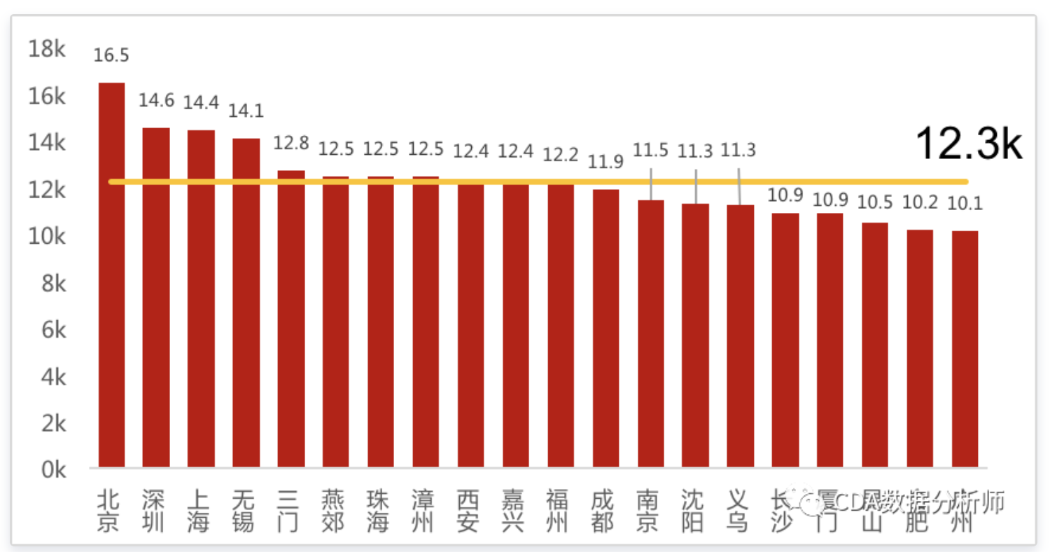 纯数据岗位薪资 TOP20 城市: